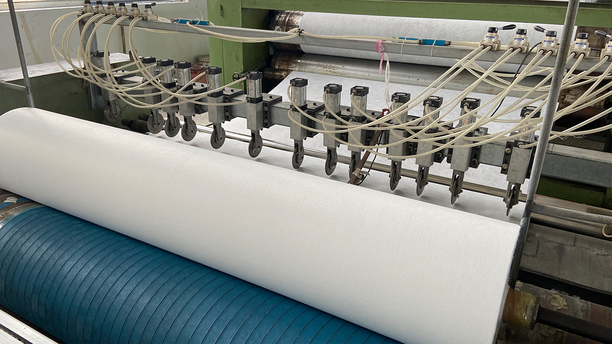 以滌綸、丙綸等為原材料,經過開松、梳理、鋪網、針刺、熱軋工藝制造,
